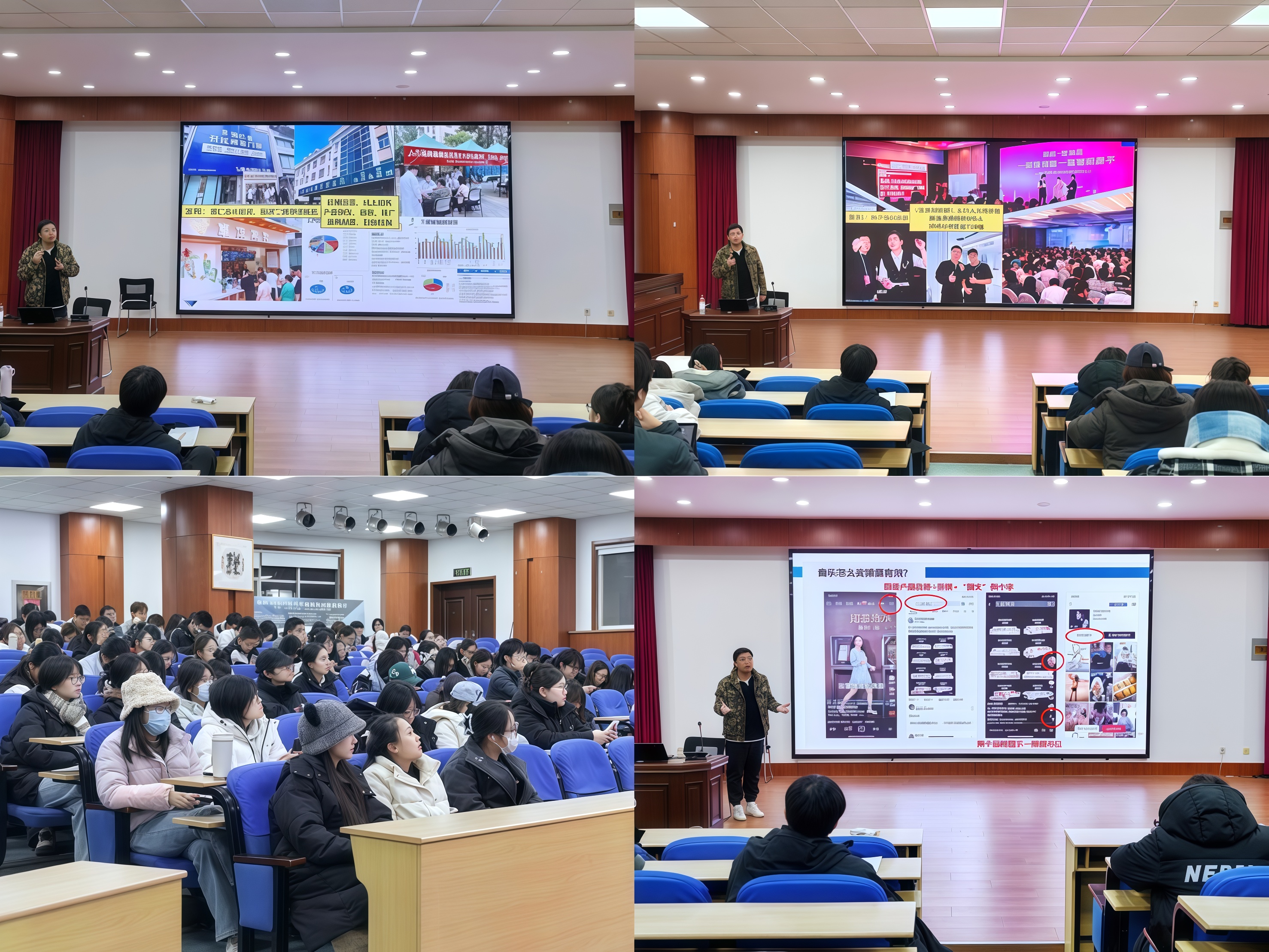 王秉全在新媒体内容策划与品牌推广领域深耕多年,曾主导策划腾讯总部大楼创意展馆等项目,在新媒体与餐饮等行业的融合运营方面积累了丰富经验。在讲座中,他通过“一分钟吃塔可”创意活动助力小众西餐厅迅速走红等生动案例,系统阐述了新媒体内容创作的内在逻辑、策划推广岗位的职能构成、不同平台运营规则以及新账号的冷启动策略等内容。同时,他深入剖析了新媒体与多领域融合带来的新机遇,并就大学生如何在新媒体时代明确自身定位、探索发展方向提出了切实建议,鼓励同学们勇于突破思维局限,积极尝试,以创意和执行力塑造个人或项目的品牌影响力。