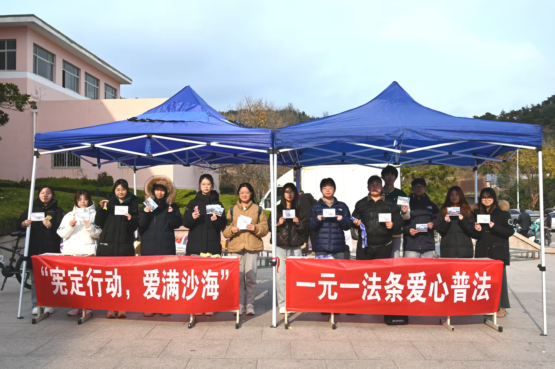 在国家宪法日来临之际,法学院与青鸟社工协会联合举办“一元一法条”爱心募捐活动。尽管冬日寒风凛冽,师生们的参与热情却丝毫未减,志愿者们为每位捐赠者送上一张印有宪法条文的纪念明信片,在传递爱心的同时,普及法律知识,现场暖意融融,爱心涌动。本次活动将专业特色融入公益行动,搭建起校园与西部地区的爱心桥梁,也唤起师生对西部学子成长的关注与支持。活动最终募集善款,用于援助西部地区儿童完成学业。