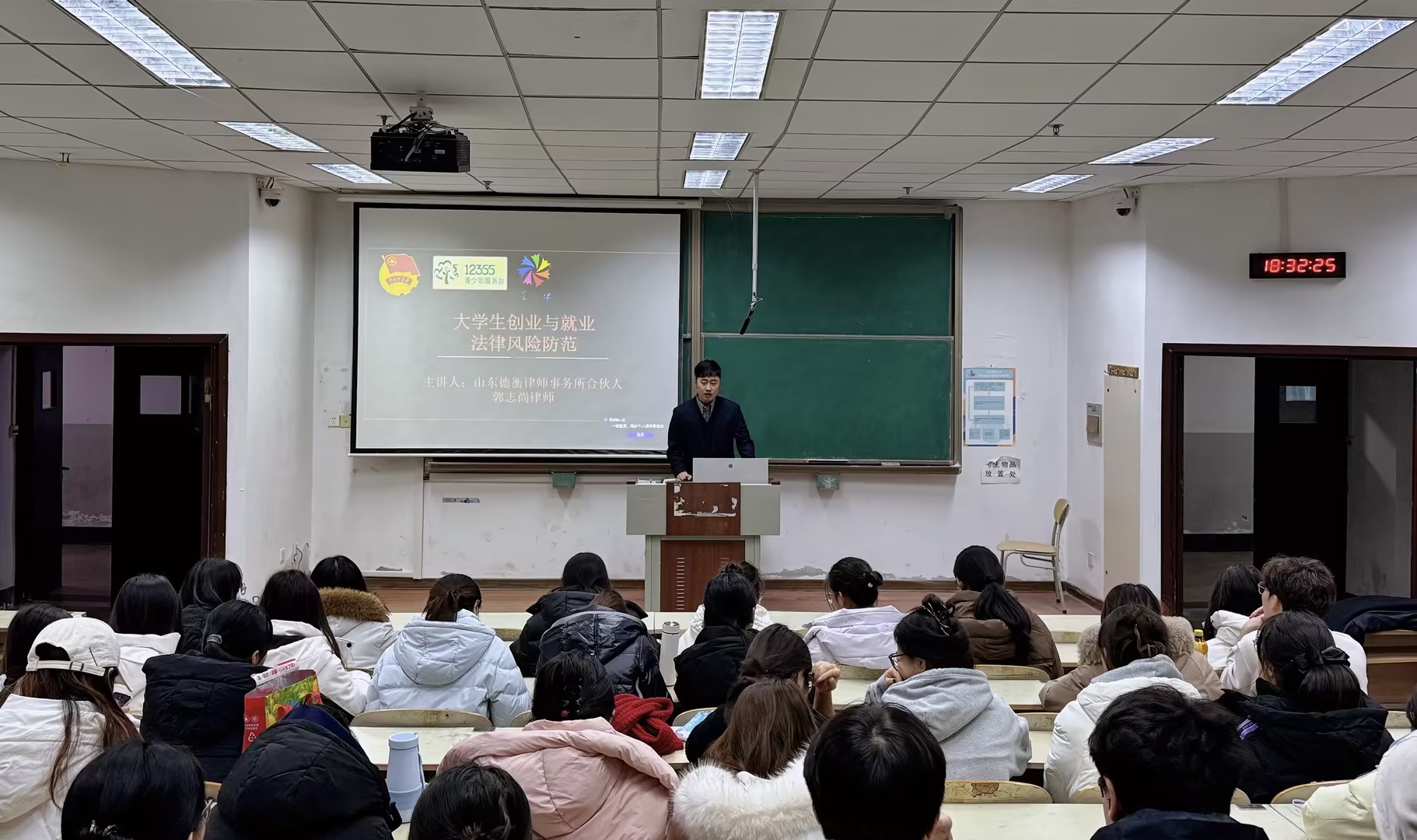 为提升毕业生法律意识与风险防范能力,近日,数理学院团委联合崂山团区委、山东德衡律师事务所,共同开展“大学生就业与创业法律风险防范”专题培训。山东德衡律师事务所权益合伙人、股权业务部主任郭志尚律师担任主讲,学院100余名学生积极参与。