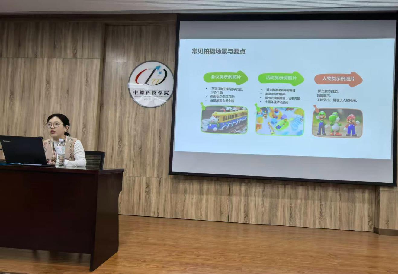 张大伟围绕摄影创作的“道”与“术”展开主题分享。他指出,新闻宣传是学院彰显办学特色、展示育人成果、凝聚师生共识、塑造对外形象、讲好合作故事的重要平台,希望通过此次培训,切实提升新闻宣传稿件的质量,使新闻宣传工作更好地服务于学院发展大局。他强调,镜头作为一种“无声的语言”,既要掌握专业技术,更需坚守“以情取景、以景传意”的创作初心。同时,他鼓励同学们在各类会议、活动与交流中敏锐捕捉生动瞬间,通过影像传递更为深刻的价值内涵。