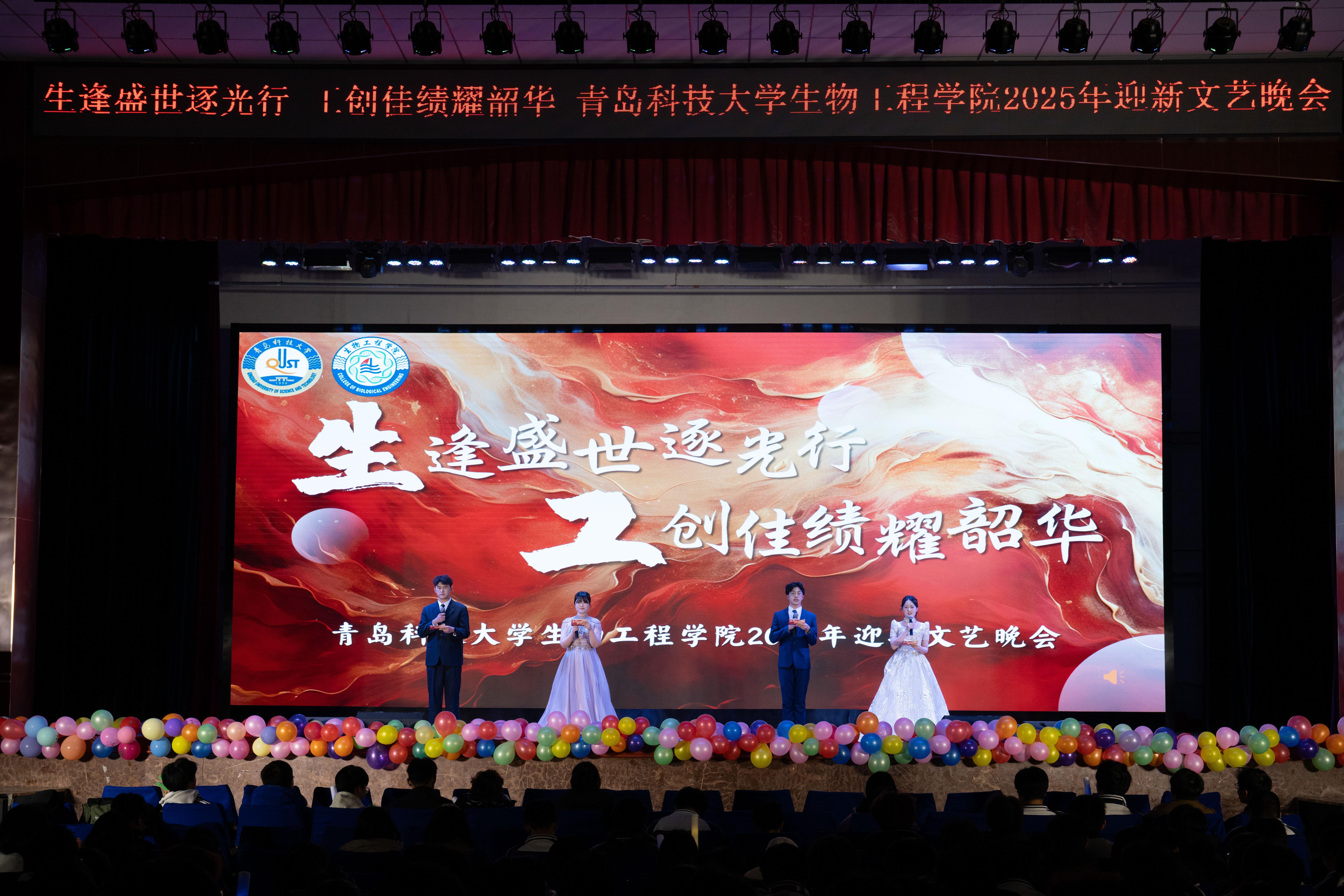 为激励广大生工青年勇担时代重任,传承青春力量,近日,生物工程学院团委在四方校区西礼堂举行“生逢盛世逐光行,工创佳绩耀韶华”2025年迎新晚会。生物工程学院院长顾玉超、党委副书记兼副院长刘浩、洛阳路街道周口路社区党委书记李静、学院团委书记秦洪庆、全体团干部和2024级、2025级全体学生参加活动。