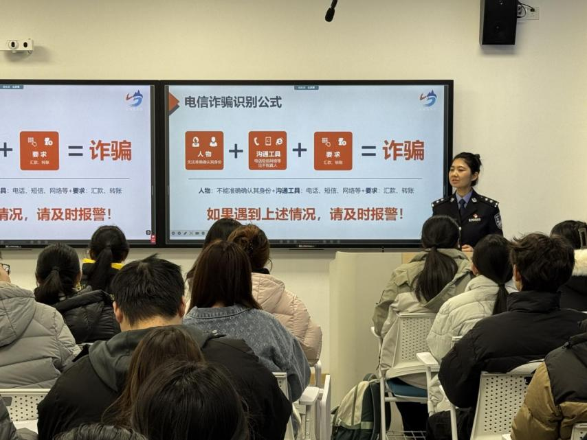 活动中,民警聚焦大学生群体高发诈骗类型,采用“案例剖析+知识普及+互动问答”的方式,生动剖析刷单返利、虚假购物、冒充客服等常见骗局,逐步拆解诈骗套路,并总结出易懂实用的“反诈识别口诀”。结合全国“断卡”行动,民警详细讲解非法租售“两卡”的危害与后果,引导学生自觉远离违法犯罪,筑牢法治防线。现场重点推广了“国家反诈中心”APP和96110预警专线,手把手指导安装与使用,确保防骗工具真正用起来、效果好。
