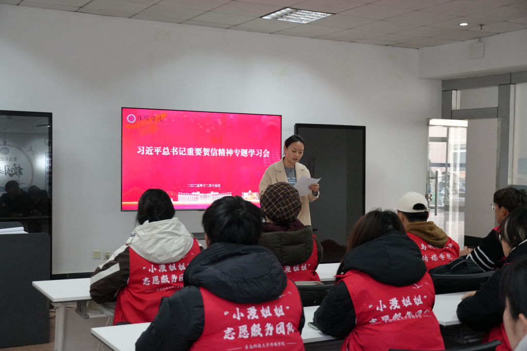 为深入学习贯彻习近平总书记致中国志愿服务联合会第三届会员代表大会的重要贺信精神,凝聚青年志愿力量,12月15日,传媒学院“小漫姐姐”志愿服务团队在“一站式”学生社区召开专题学习会。会议由辅导员张凤主持,全体志愿者齐聚一堂,共同学习贺信精神,谋划团队发展新路径。
