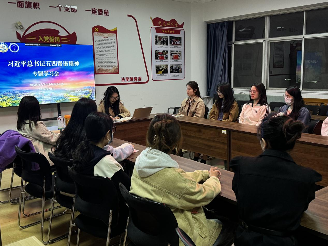 为传承和弘扬五四运动中所体现的”爱国、进步、民主、科学”的精神内涵,法学院团委于5月8日通过研讨学习的形式,组织青年学子学习习近平总书记五四深情寄语,带领同学们重温五四运动的历史背景与发展脉络,深刻感悟其跨越时代的重大意义。