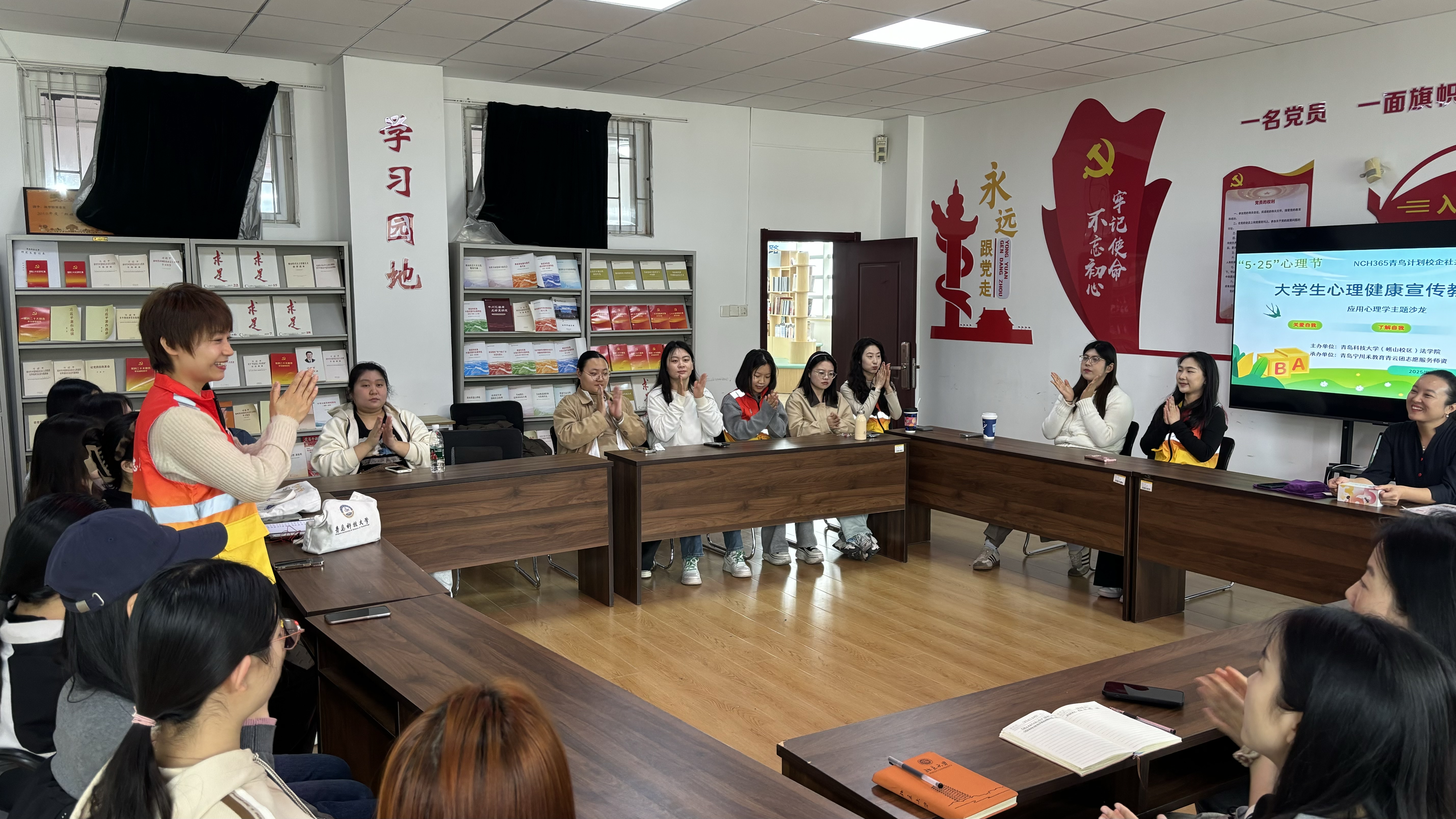 5月9日上午,由法学院团委与崂山区新时代文明实践中心主办,青岛宁川禾教育青云团承办的“青鸟计划校企社共建·心理健康宣传教育月”主题活动在法学院党团活动室举行。活动以“关爱自我·心向阳光”为主题,通过应用心理学主题沙龙与情绪管理微课堂,为学生们开启了一场探索心理健康与情绪管理的科学之旅。
