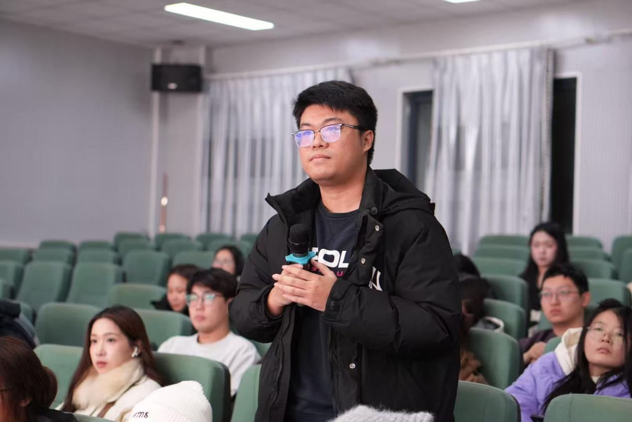 在互动环节,参与讲座的师生积极提问,彭岳一一进行了详细的解答,现场交流探讨氛围热烈。