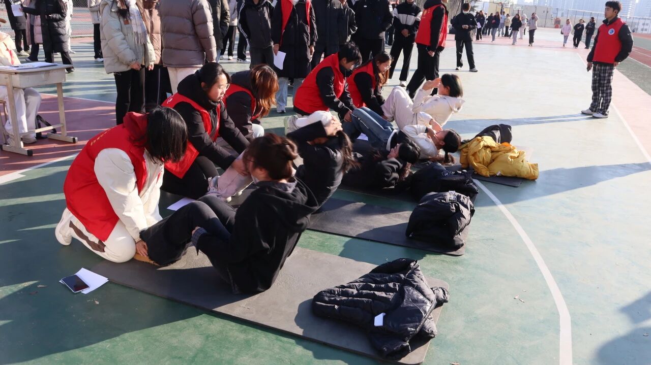 赛场上,男生在单杠区奋力挑战,握杠稳实、动作连贯,展现出坚持不懈的拼搏姿态;女生在仰卧起坐项目中认真投入,在志愿者协助下不断突破自我极限。学子们在比赛中挥洒汗水、斗志昂扬,充分展现了奋力拼搏、昂扬向上的精神风貌。