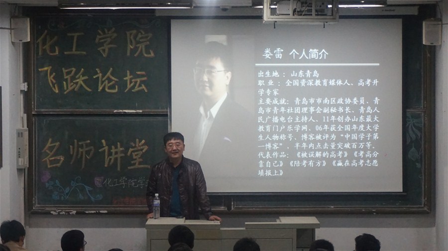 11月18日晚,化工学院飞跃论坛之名家讲坛在四方校区一教开讲。第一讲邀请到青岛市青年联合会委员、新浪网高级编辑、主持人娄雷做了题为“如何让大学生活更成功”的讲座。