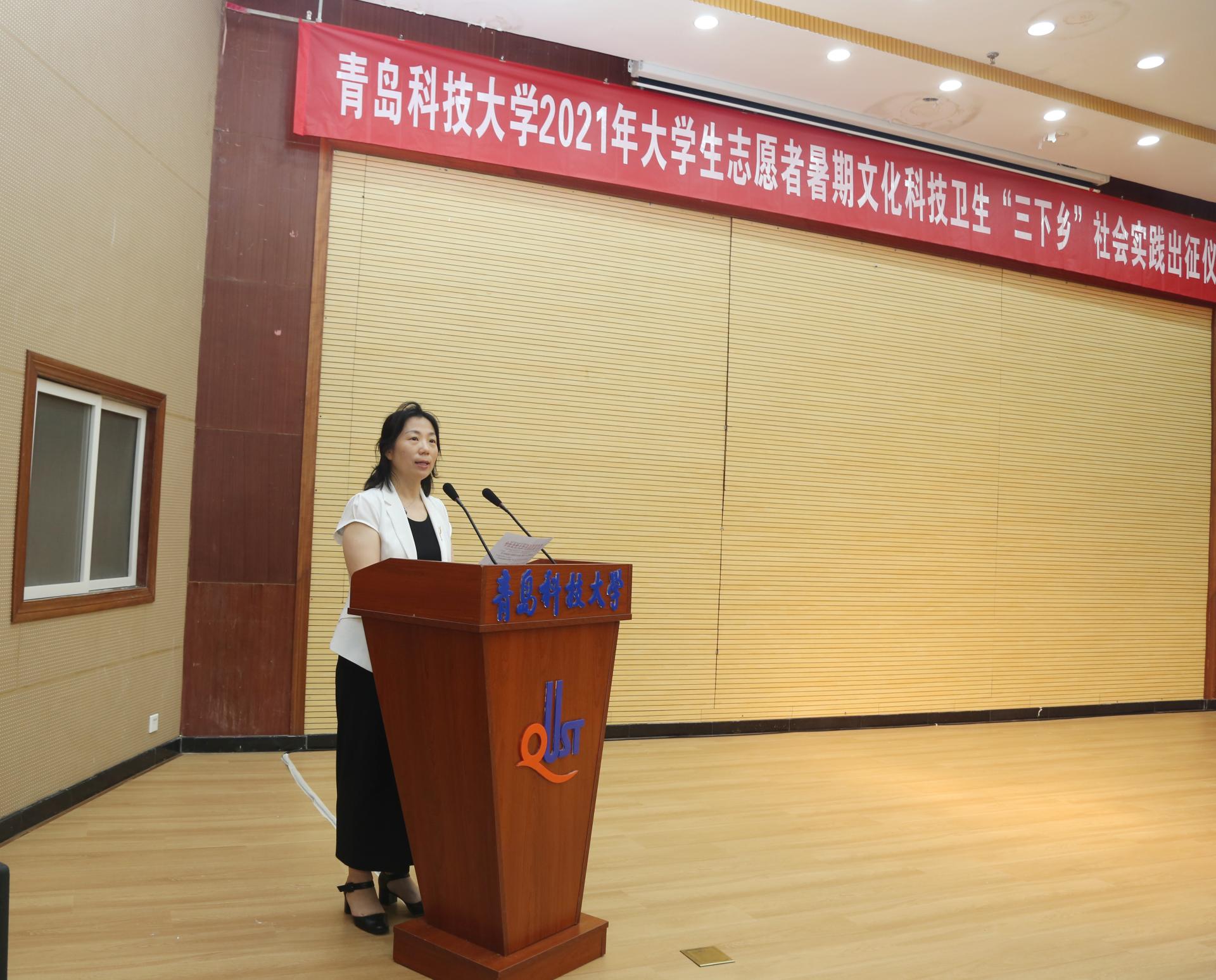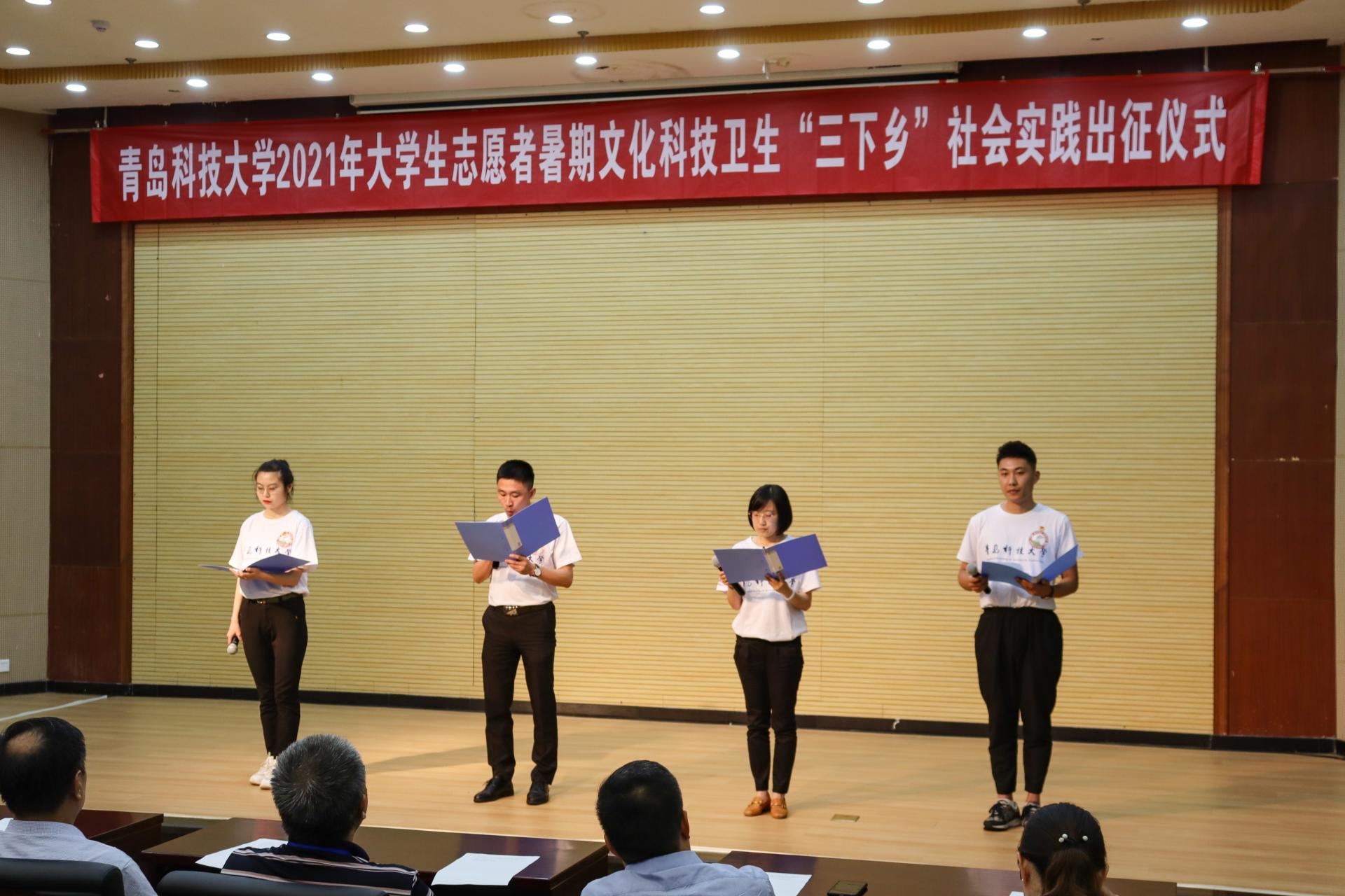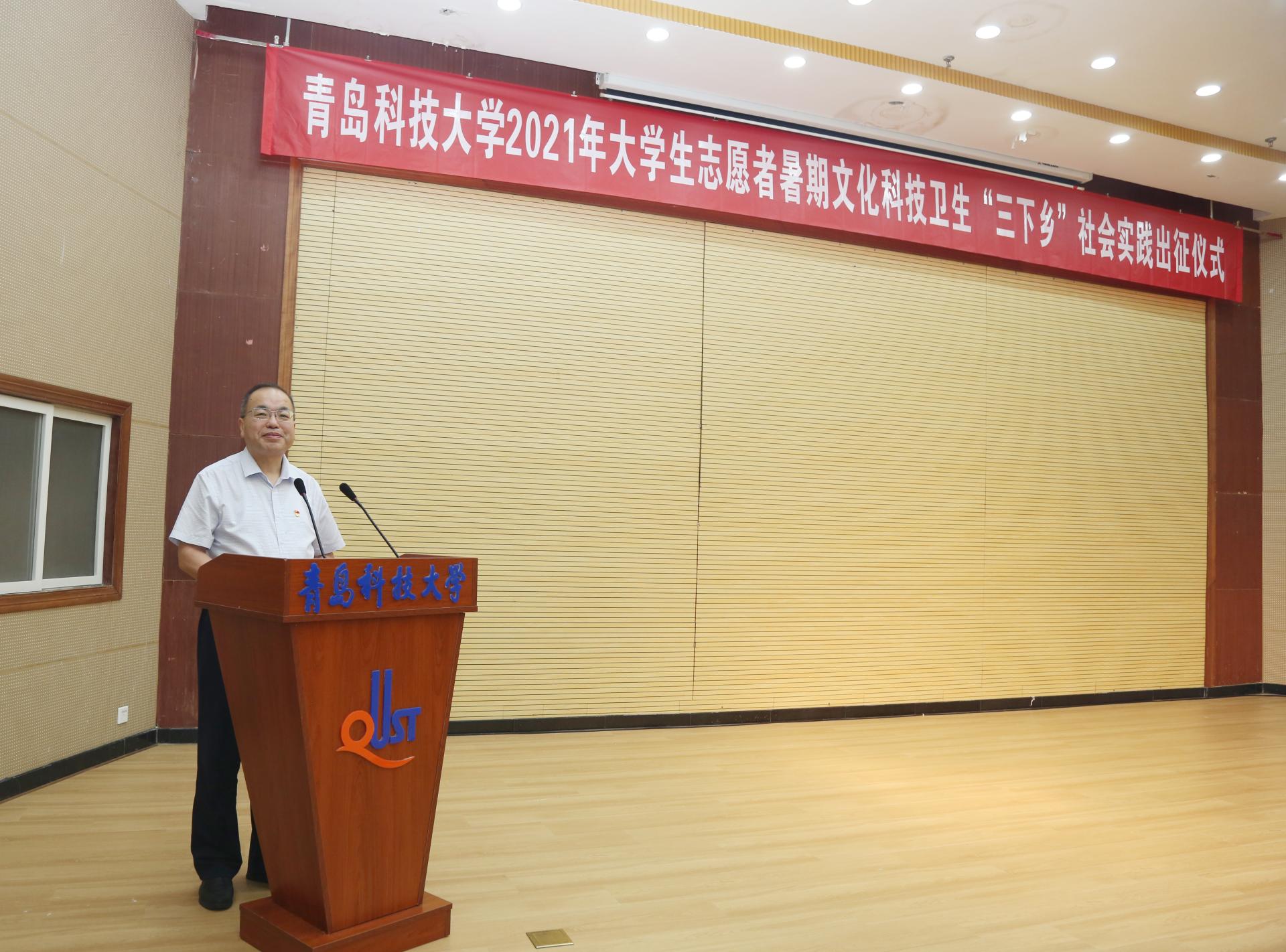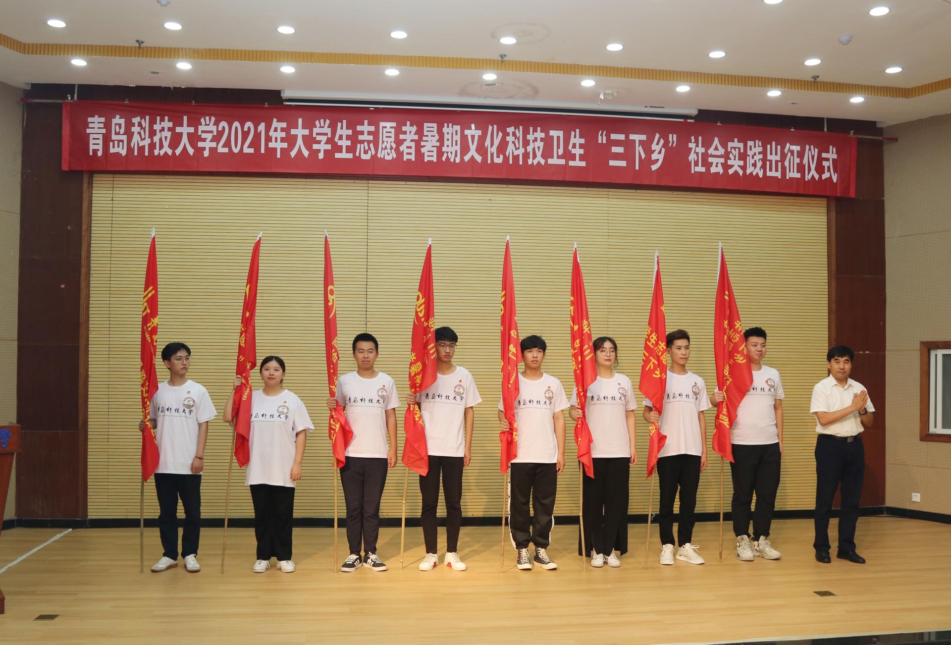 7月13日下午,AC米兰中国官网2021年大学生志愿者暑期文化科技卫生“三下乡”社会实践出征仪式在崂山校区第一报告厅举行。党委常委、副校长丁林出席仪式并讲话,党委常委、组织部部长聂法良,党委常委、宣传部部长陈刚以及相关部门负责人参与仪式。1000余支大学生暑期“三下乡”社会实践团队出征。