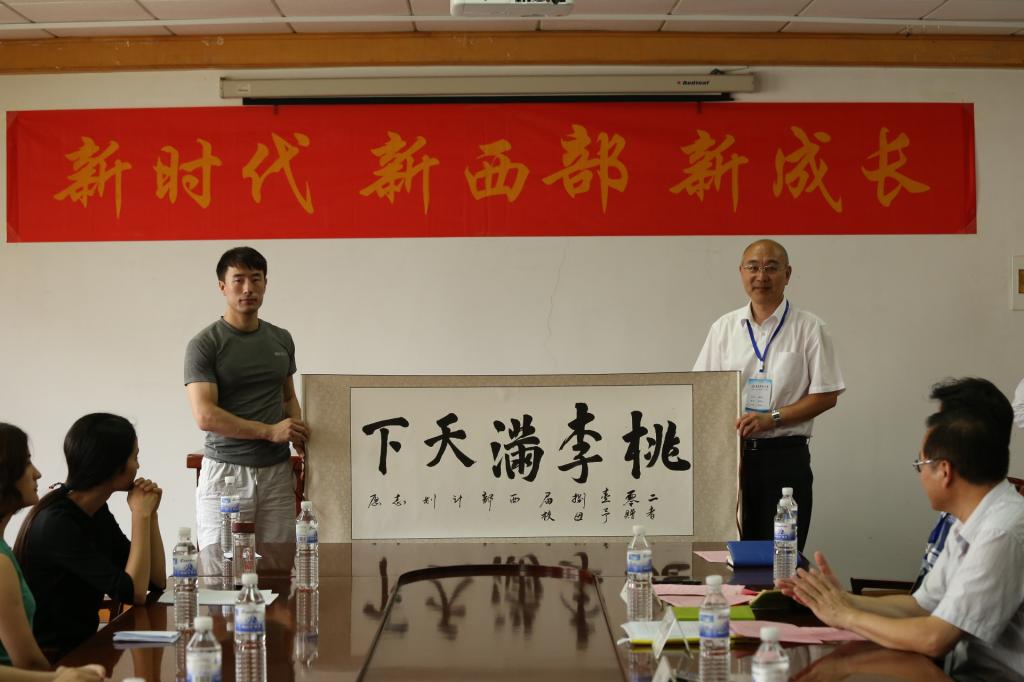 欢送座谈会上,陈克正为2018年新疆基层公务员、西部计划志愿者、第二十届研究生支教团志愿者分别颁发了西部计划志愿者奖和纪念品,代表学校接受了志愿者赠送的书画作品《耐冬》、《桃李满天下》并讲话。陈克正充分肯定了志愿者们人生选择,指出,在深入学习贯彻习近平新时代中国特色社会主义思想和党的十九大精神、上合组织青岛峰会成功举行之际,志愿者们将个人理想融入到国家发展当中来,是新时代可爱、可亲、可敬的人。他回顾了往届优秀西部计划志愿者的优秀事迹,勉励即将奔赴西部的志愿者们向优秀志愿者学习,一要坚定理想信念,与时代同呼吸、共命运。他引用习近平总书记在今年五四青年节前夕考察北京大学时对当代青年的期望,勉励志愿者们同新时代共同前进,做到理想坚定,信念执着,不怕困难,勇于开拓,顽强拼搏,永不气馁;二是要通过奋斗来铸就幸福之源、成长之梯、成功之基。他以习近平七年知青岁月的成长为例,诠释了奋斗对于青春的涵义,希望志愿者们脚踏实地,自觉到基层去,到人民群众中间去,到祖国最需要的地方去,不断奋斗;三是要通过不断学习来汇聚成长不竭的动力源泉。他要求志愿者们要深入基层,深入群众,勤学好问,向实践学习、向书本学习、向人民群众学习,为自己的成长发展提供不竭动力;四是要积极适应当地环境和风俗习惯。要在岗位上不断自我调整,调整好心态,调整好状态,时刻准备迎接新的工作和生活。最后,陈克正勉励志愿者们“乘风好去,长空万里,直下看山河”,常忆母校,常思母校,常回家看看。