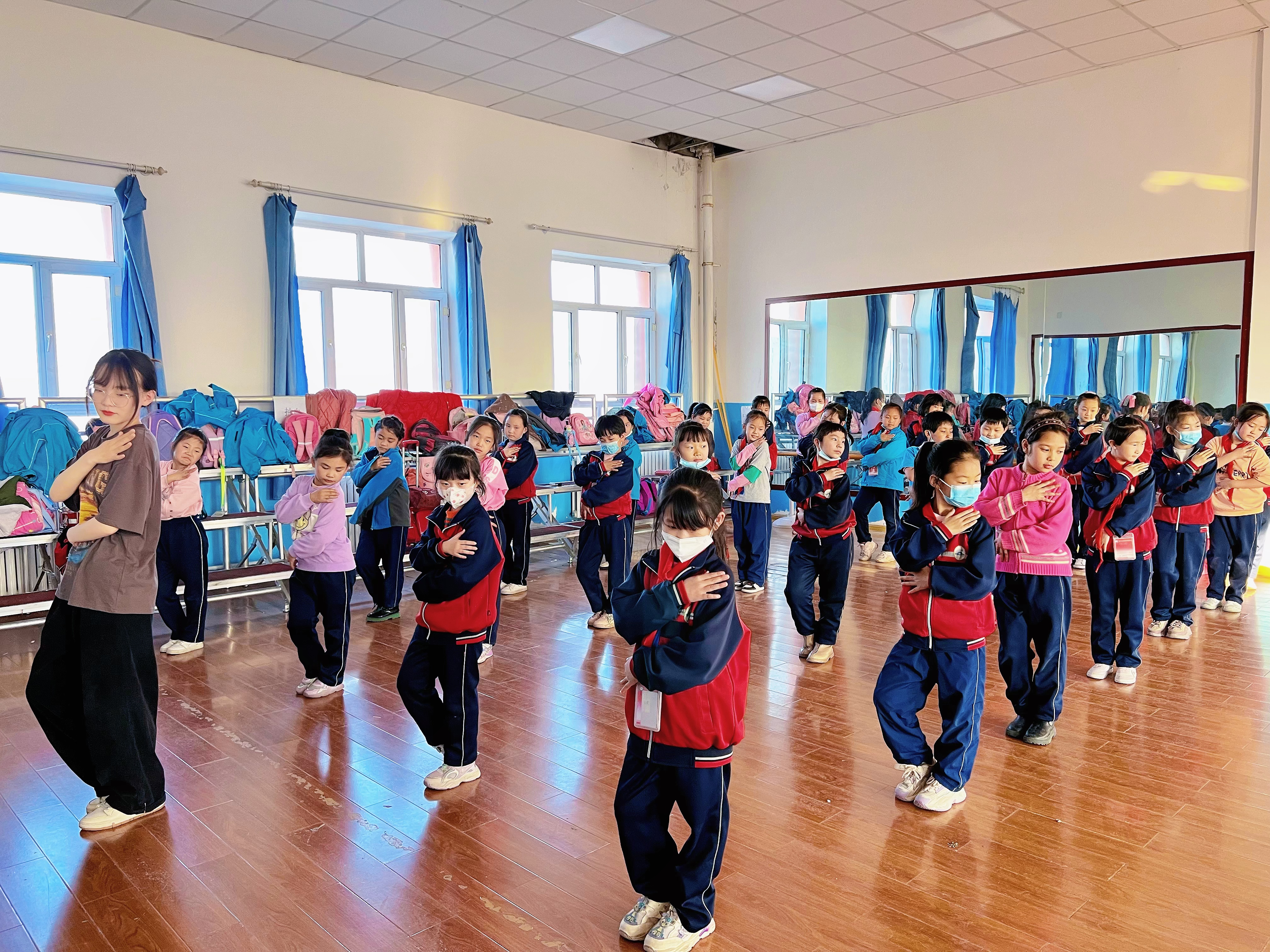 缪潇玄带领学生练习舞蹈