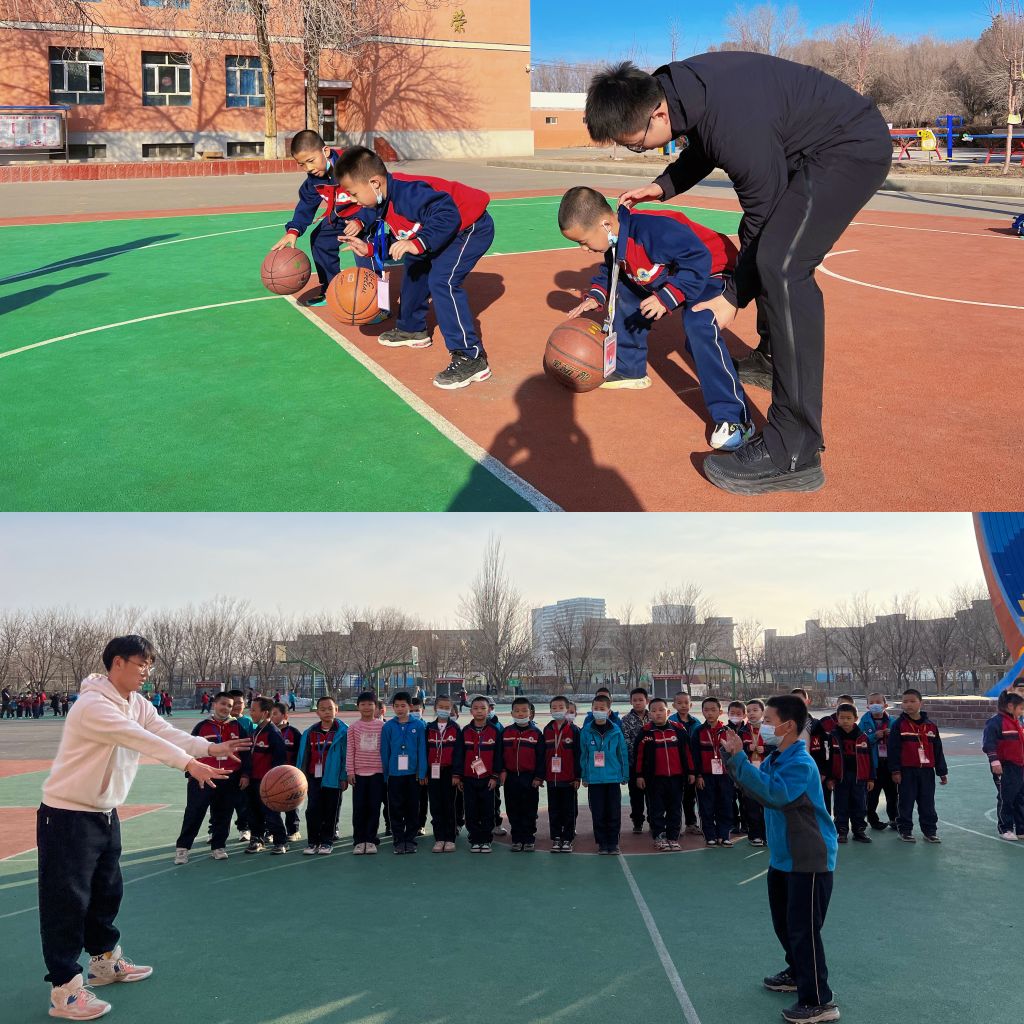 张天一与杨昀昊带领学生进行篮球基本功教学