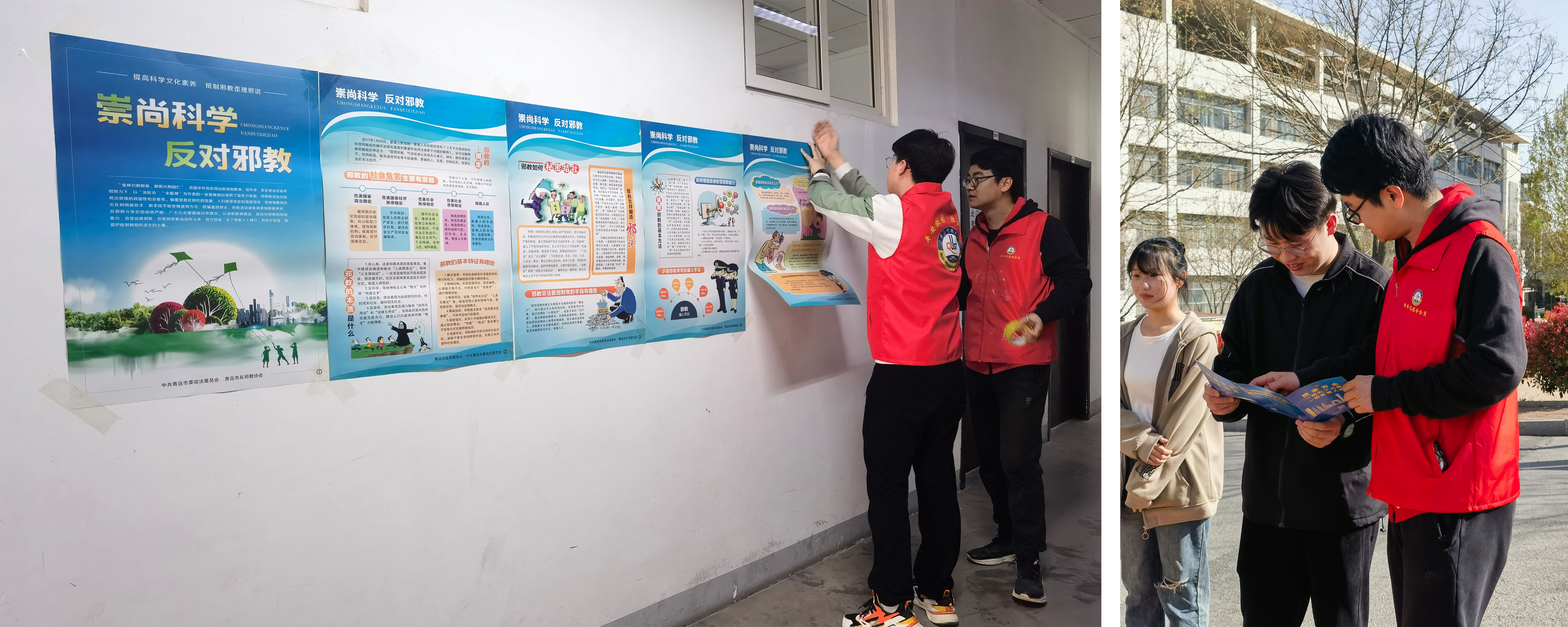 志愿者通过宣讲警示教育宣传海报、发放宣传资料,围绕什么是邪教、为什么要反邪教、如何防范邪教三个方面对青年学生进行宣传教育,结合真实案例分析邪教的基本特征,倡议全校学生对邪教活动和非法宗教活动要做到“不听、不看、不信、不传”。志愿者还引导全校师生关注“中国反邪教”微信公众号,通过反邪教知识答题、反邪教趣味小游戏,加深师生对邪教特征、危害的认识。宣讲活动后,校研究生会、反邪教社团组织工作人员进行校园安全巡查,对校园内的不良标语与小广告进行了清除。